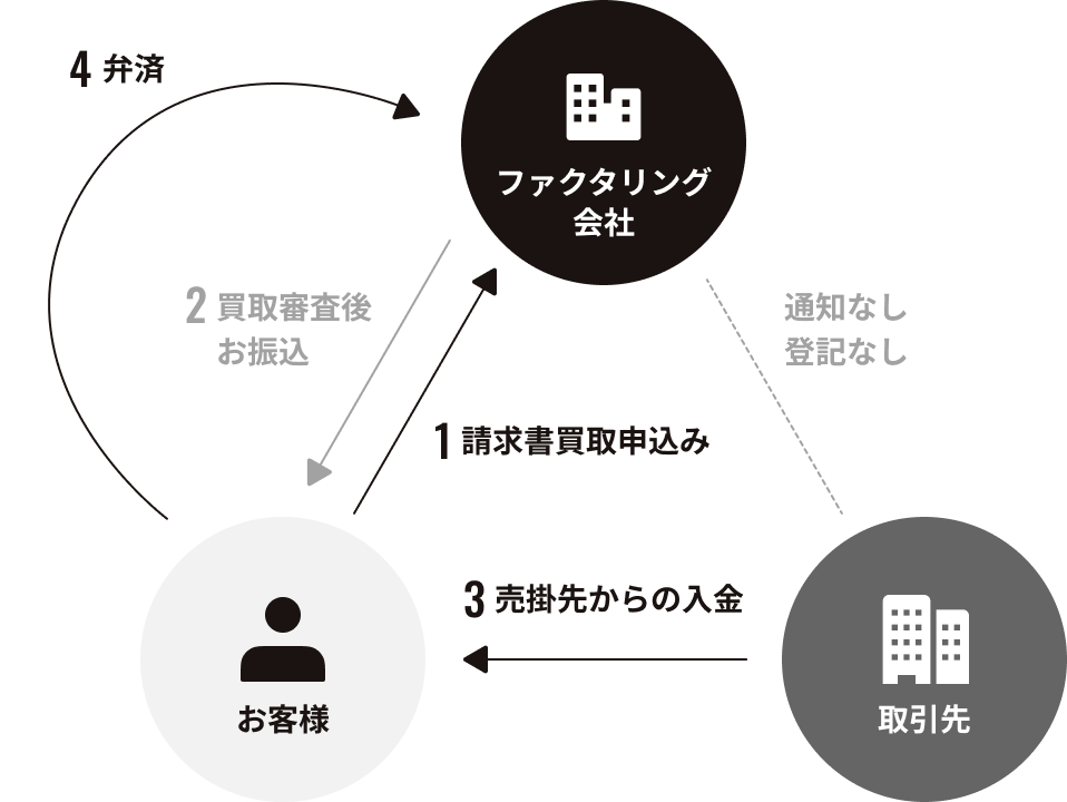 - 取引先に通知不要な契約方式で、取引関係を維持しながら資金化を実現