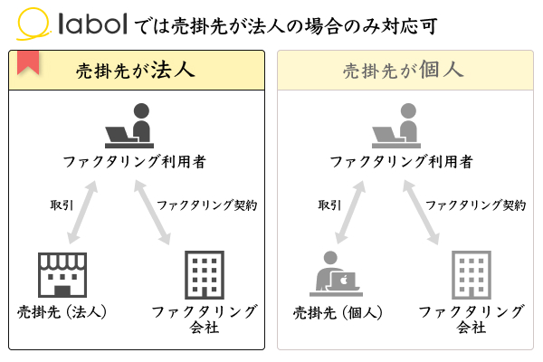 ラボルは売掛先が法人以外では対応してくれません。個人間取引には対応していないのです。